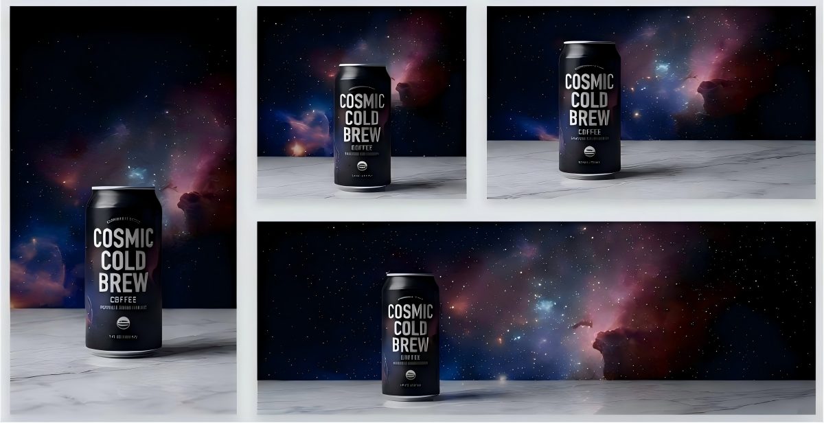 The Goal: Create launch visuals for a new coffee brand, "Cosmic Cold Brew."